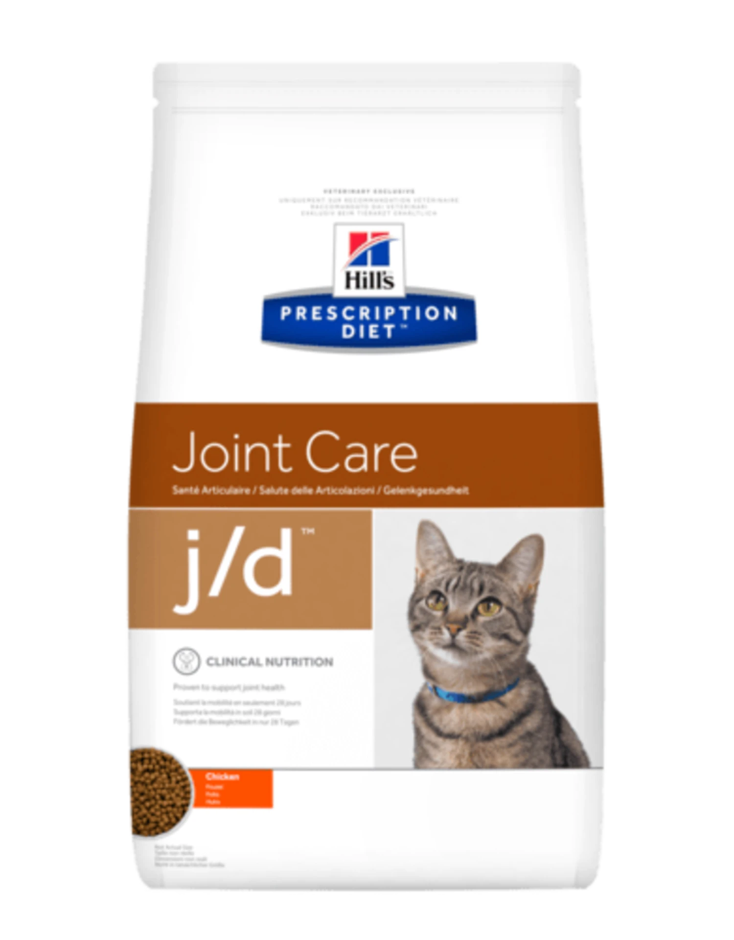 De mobiliteit van een kat verdwijnt naarmate ze ouder wordt. Een kat die niet voldoende beweegt, is vatbaar voor veel gezondheidsrisico’s die de kwaliteit en de verwachting van het leven drastisch zullen verminderen. Hill’s Prescription Diet j/d zorgt ervoor dat de mobiliteit van de kat zo langzaam mogelijk afneemt. Het kraakbeen wordt ondersteund en beschermd tegen kraakbeenetende bacteriën. Ondertussen zorgen omega-3-vetzuren ervoor dat op moleculair niveau de ingrediënten op de juiste manier worden verplaatst. Dit zal het kraakbeen nog verder versterken. Hill’s Prescription Diet j/d is een complete dieetmaaltijd die levenslang kan worden gevoed. Neem contact op met uw plaatselijke dierenarts om te controleren of dit het probleem is dat u en uw kat moeten oplossen.