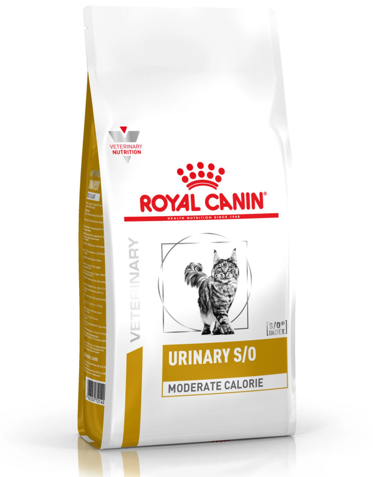 Royal Canin Vdiet Urinary S/O Moderate Calorie is een droogvoer voor gecastreerde katten met nierproblemen die wegens inactiviteit met overgewicht kampen. Door zijn unieke samenstelling worden de nieren gereinigd van nierstenen – voornamelijk struvieten en calciumoxolaat. Daarbovenop bevordert het de nierfuncties door de toevoer te verdunnen, waardoor nierstenen zich niet meer kunnen vormen. Verder is het eten caloriearm om gewichtstoename te voorkomen.