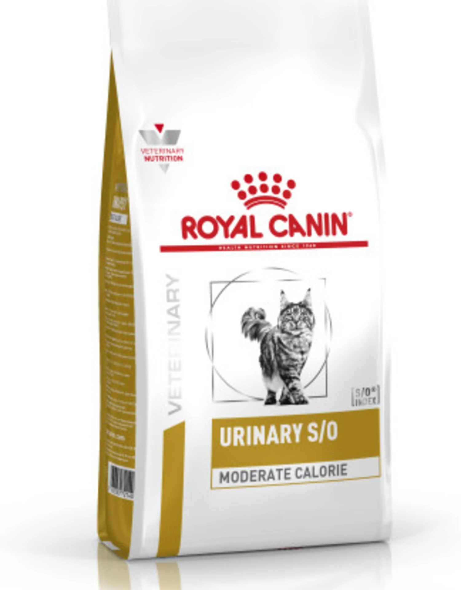 Royal Canin Vdiet Urinary S/O Moderate Calorie is een droogvoer voor gecastreerde katten met nierproblemen die wegens inactiviteit met overgewicht kampen. Door zijn unieke samenstelling worden de nieren gereinigd van nierstenen – voornamelijk struvieten en calciumoxolaat. Daarbovenop bevordert het de nierfuncties door de toevoer te verdunnen, waardoor nierstenen zich niet meer kunnen vormen. Verder is het eten caloriearm om gewichtstoename te voorkomen.
