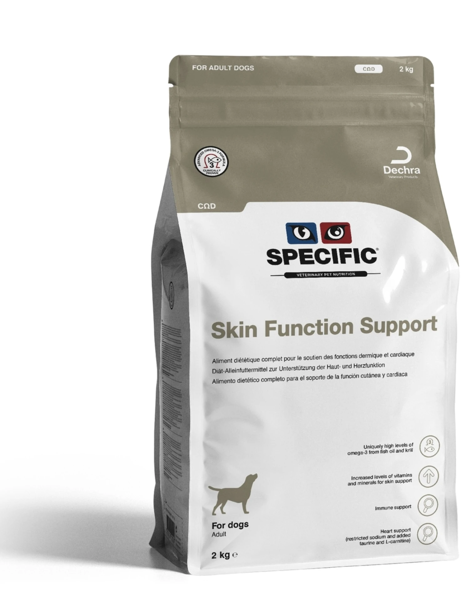 Specific COD Omega Support is compleet hondenvoer gericht op honden die lijden aan allergische reacties en/of huidziekten. Bovendien biedt het een uitgebalanceerde maaltijd die vele lichamelijke condities zal verbeteren. Omega-3 ondersteunt de huid en vacht en samen met een andere reeks voedingsstoffen versterkt het het immuunsysteem van uw hond. L-carnitine en taurine ondersteunen de hartfunctie, terwijl lagere natriumspiegels hun bloeddruk reguleren. Als uw hond lichamelijke of interne medische aandoeningen heeft met betrekking tot allergieën, huid- en /of hartproblemen, kan Specific COD Omega Support nuttig zijn voor uw hond. Raadpleeg uw dierenarts in het geval van hartaandoeningen om er zeker van te zijn dat deze voldoet aan de behoeften van uw hond.