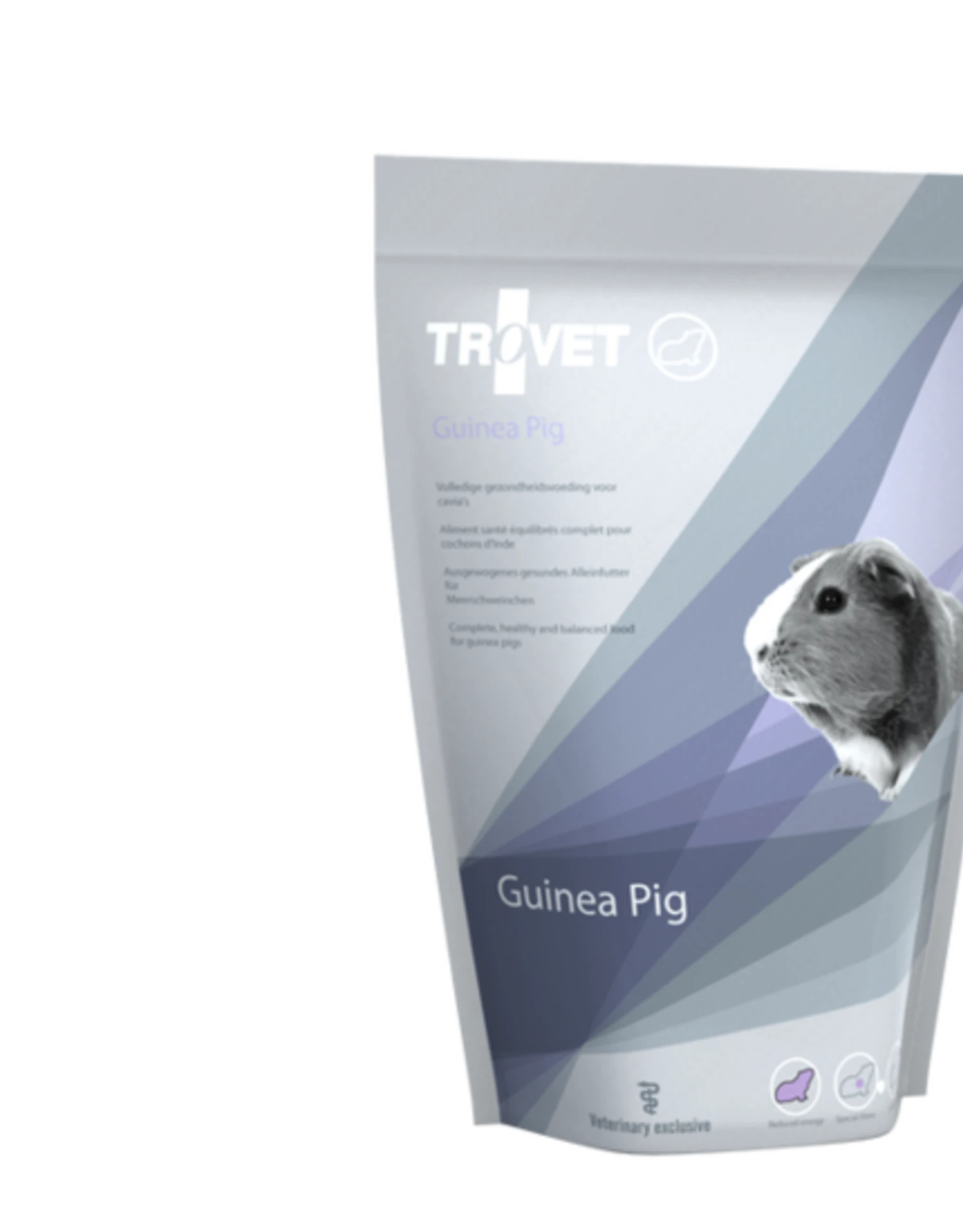 Trovet Guinea Pig is geformuleerd om te voldoen aan de behoeften van cavia’s die nog steeds groeien of om hun lichaam te onderhouden. Als compleet dieet kan Trovet Guinea Pig worden gebruikt als herstelvoedsel vanwege zijn licht verteerbare aard. Rijk aan vitamine C, het vermindert het risico op hypovitaminose C en de hoogwaardige vezels beschermen tegen obstipatie. Zorg ervoor dat je altijd vers hooi toevoegt aan hun dieet. Trovet Guinea Pig wordt het beste gevoed naast vers hooi en vers water voor maximale effectiviteit. Trovet Guinea Pig , een voedzame en heerlijke maaltijd met de juiste hoeveelheid vitamines en mineralen om gastro-intestinale of urinaire aandoeningen te voorkomen en de eetlust van uw cavia te verzadigen.